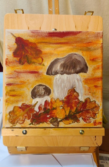 Meine Hauptmotive sind Pilze, mit denen ich mich auch anderweitig intensiv beschäftige. Aber auch andere Motive aus der Natur finden meine Begeisterung und werden auf die Leinwand gebannt, wie Bienen, Katzen, Störche, Federn, Landschaften und alles, was mit Wald und Wasser zu tun hat.