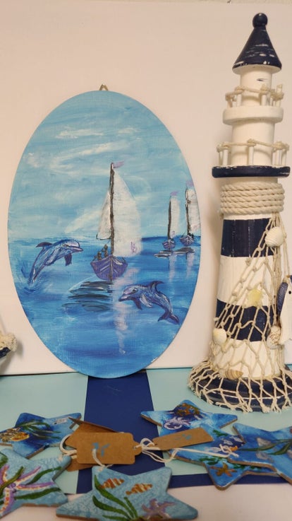 Diese Leinwand auf Karton habe ich mit Acryl bemalt und mit einer Öse zum Aufhängen versehen.