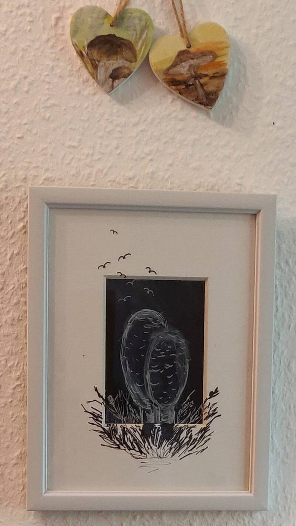 Die Zeichnung ist gerahmt. Größe des Rahmens: 18 x 24 cm