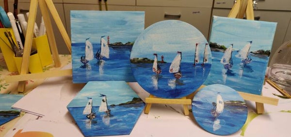 Segelboote an der Küste, kleine Leinwand